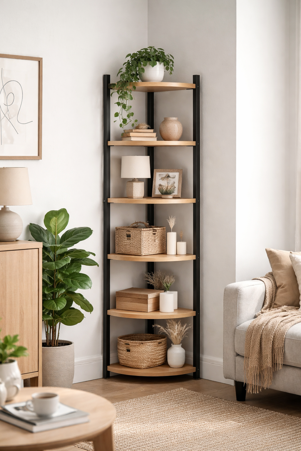 A sarkok gyakran „elvesznek” a térből, pedig jól kihasználhatók. Sarokpolcokkal vagy keskeny tárolókkal extra helyet teremthetsz.